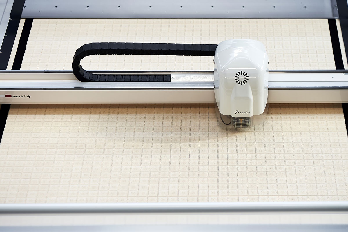 Hệ thống cắt với mặt bàn cắt dạng Băng Chuyền Tự Động (Automatic conveyor) cho phép cắt bàn vải cao đến 2,5cm (sau khi nén) và cắt tất cả các loại vải. Freccia là giải pháp lý tưởng cho sản xuất qui mô vừa và nhỏ có thể cắt nhanh tất cả các loại vải cho phép giảm đáng kể mức tiêu thụ năng lượng; lợi thế này và các ưu điểm khác cho phép giảm chi phí sản xuất đáng kể.