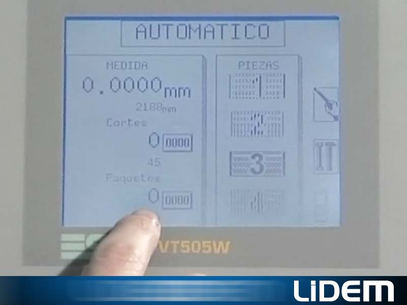 As in the other models, all machine parameters are controlled from the centre console via the touch screen display (number of cuts, cutting length, cuts package, number of packages, extended trolley speed, voltage, travel speed of the blade, speed of descent of the elevator table, etc.).